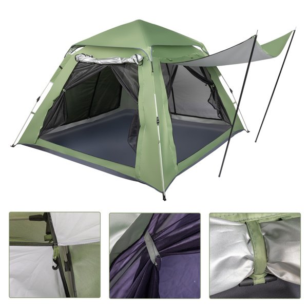 240*240*150cm Spring Quick Open Four-Person Family Tent Camping Tent Green