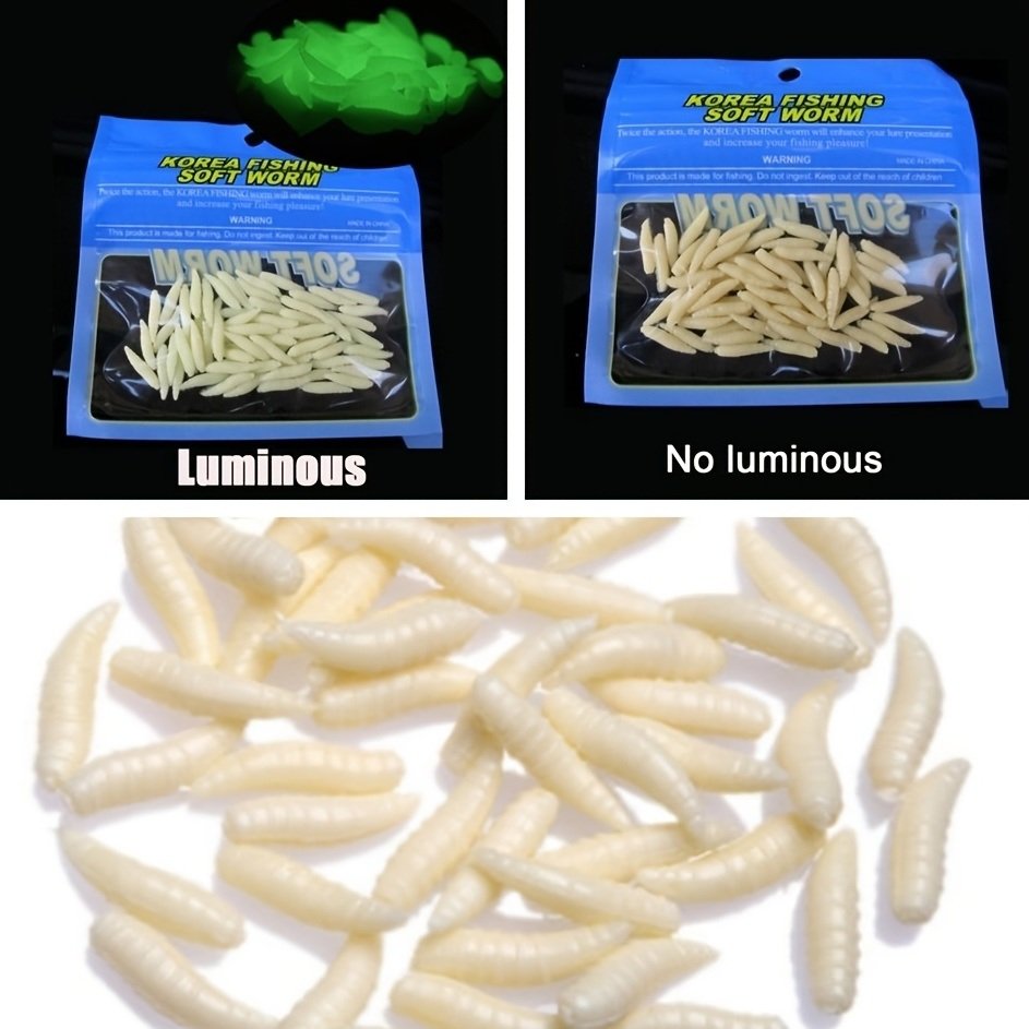50pcs Maggot Fishing Lure; Luminous Worms Soft Baits 1.6cm/0.6inch
